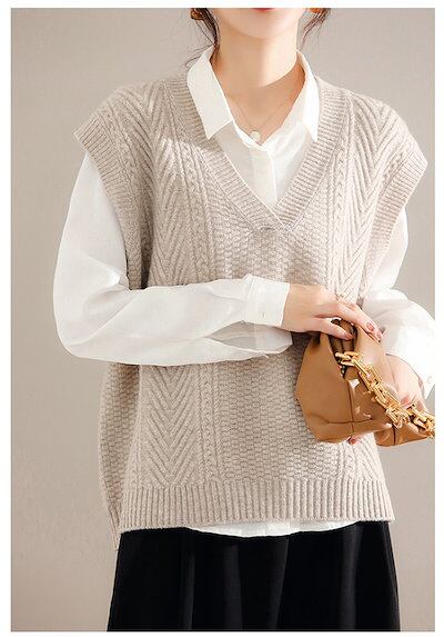 ケーブルニット ベスト レディース ニットベスト vネック 無地 トップス ノースリーブ ニットカーディガン 重ね着 レイヤード ゆったり 大人 カジュアル 春 秋 冬 きれいめ おしゃ
