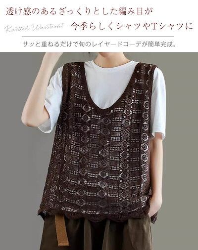 ベスト 透かし編み ニットベスト レディース 春夏 ベスト トップス プルオーバー かぎ編み クロシェ編み ベスト 重ね着 レイヤード カジュアル ニットベスト きれいめ カジュアル ブラック ベージ
