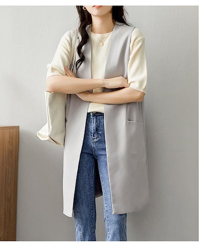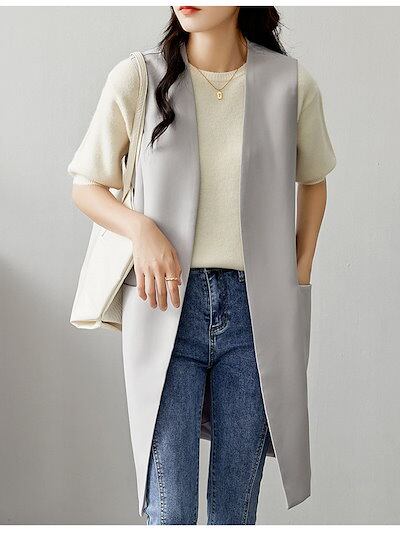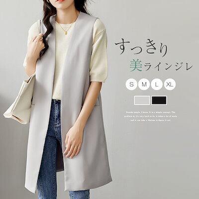 ジレ ベスト レディース 春夏 前開き ロングジレ テーラードベスト ノースリーブ ロングベスト ジレジャケット おしゃれ エレガント フォーマル カジュアル 通勤 OL 黒 グレー 秋