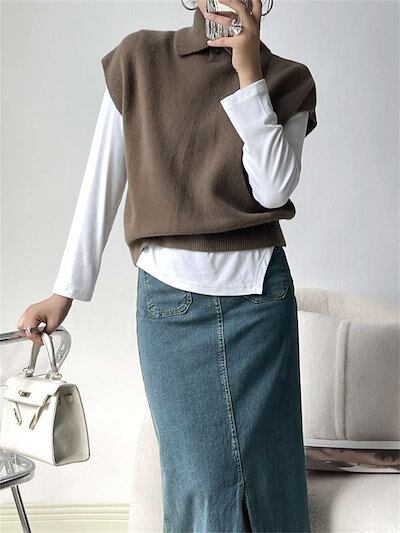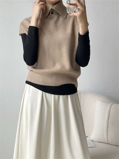 ニットベスト レディース ショート丈 フレンチスリーブ セーター ベスト レイヤード ハイネック タートルネック 春 秋 冬 プルオーバー ニットトップス 重ね着 着回し トップス 体型カバー ノース