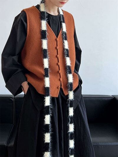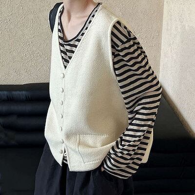 ニットベスト レディース Vネック 春 秋 冬 無地 重ね着 トップス ノースリーブ プルオーバー ショート丈 ベスト 中厚手 レイヤード風 着回し 体型カバー 着心地 普段着 柔らかい フリーサイズ