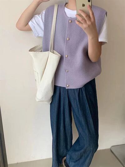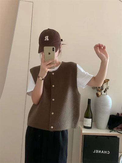 ニットベスト レディース 前開き 春 秋 冬 ニット ベスト クルーネックトップス 重ね着 ベスト 羽織り カーディガンノースリーブ レイヤード 無地 シンプル カジュアル おしゃれ 着回し ナチュラ