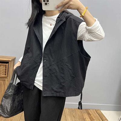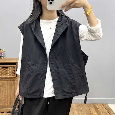 パーカーベスト レディース 春 秋 ベスト ジレ ノースリーブ 前開き 着痩せ フード付き ジレ ショート丈 コットンパーカーベスト おしゃれ ゆったり 大きいサイズ ノースリーブ アウター 無地 羽