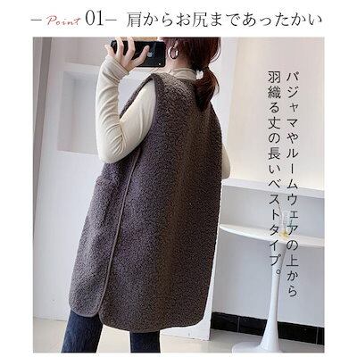 ベスト ロング アウター レディース 春 ボア フリース ジャケット ノースリーブ フェイクフリース チョッキ ジレ 防寒 前開き 重ね着 コート レイヤード風
