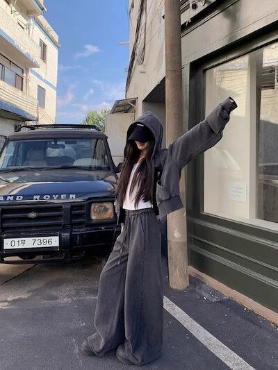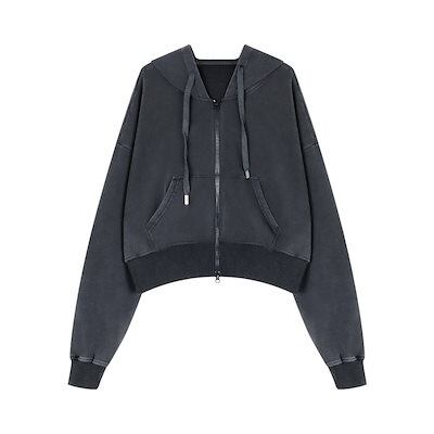 2024 秋冬 韓国風 かわいい レディース 無地 フード付き長袖アウターレトロセット_白フーディーブルサイズ丈トップス春カジュアルスポーツファッション系通学学生加工袖お出かけアップシルエットトラック