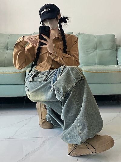 2024秋冬 デニムパンツ ボトムス ハイウエスト ジーンズ K-POP ファッション韓国系スタイル ゆるダボウェア練習ジーンズ シルエット加工ゆったり レディース カジュアル型 春夏 メンズライク