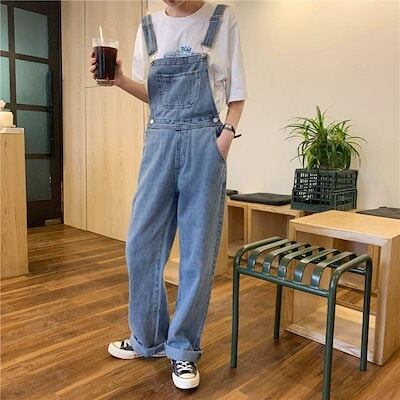 コーデ完成!サロペットライトブルーデニムバックパックパンツレディース2024春夏レトロルーズワイドパンツワークウェアカジュアル薄いドラッグパンツ