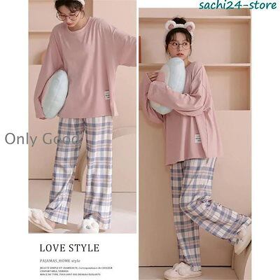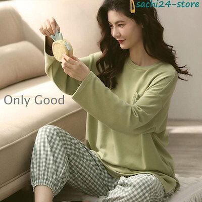 【人気商品】パジャマ レディース ルームウェア 長袖 長パンツ 上下セット 涼しい チェック柄 可愛い 柔らかい カジュアル 女性 部屋着 寝間着 春夏 韓国風