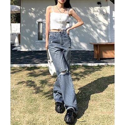 新追加 2025 新作春 脚長効果! デニムパンツ レディース ダメージデニムパンツ レディースおしゃれ
