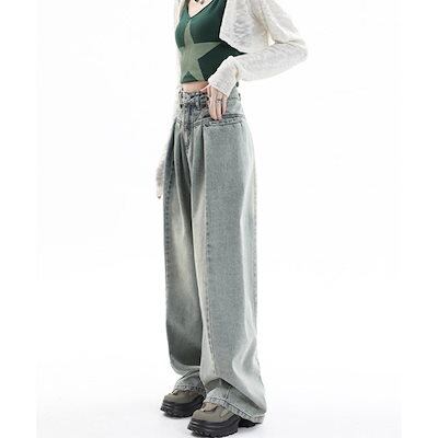 新追加 2025 新作春 脚長効果! デニムパンツ レディース デニム ワイドパンツ レディース 着やせ