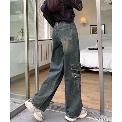 新追加 2025 新作春 脚長効果! デニムパンツ レディース ウォッシュデニムカーゴパンツ レディース