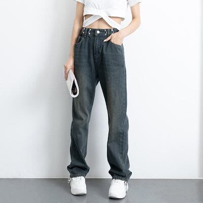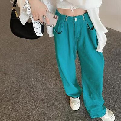 新追加 2025 新作春 脚長効果! デニムパンツ レディース ハイウエスト デニム ワイドパンツ 韓国