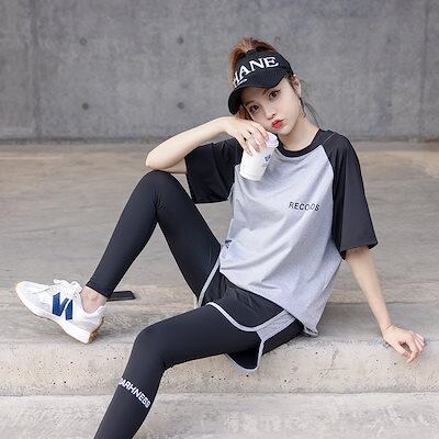 【人気商品】春夏 ヨガウェア上下セット レディース 半袖ショーツ トップス タンクトップ 運動ズボン ホット ジャージ ヨガパンツ レギンス 速乾 セットアップダイエットウェア