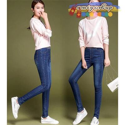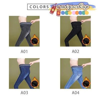 美脚 デニム柄 新作 ボトムス スキニーパンツ インナー 暖かパンツ レディース 厚手 防寒 ウエストゴム デニムパンツ レギンスパンツ 裏起毛