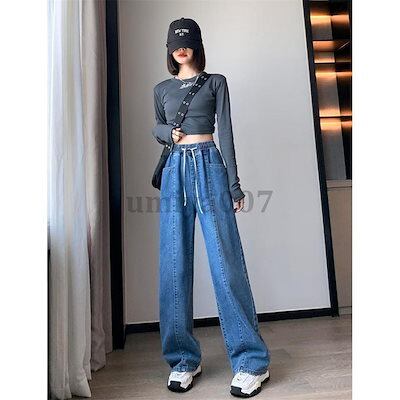 デニムガウチョ ハイウエスト ウエストゴム ジーンズ 体型カバー レディース 新作 大きいサイズ デニムパンツ ガウチョ ワイドデニム ワイドパンツ