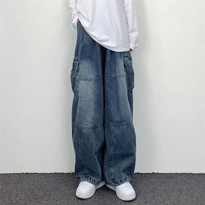 ニューデザイン レトロ デニムボトムス ドレープ感 ゆったり ワイドパンツ カジュアル ポケット カーゴパンツ レディース メンズ