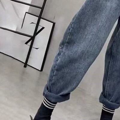 裏起毛 厚手 ニューデザイン デニムボトムス ハーレムパンツ レディース ラージコード ハイウェスト 着痩せ ストレートパンツ