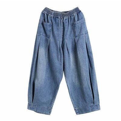 新作 デニムワイドパンツ サルエルパンツ ゆったりデニムパンツ レディース 九分丈パンツ デザイン