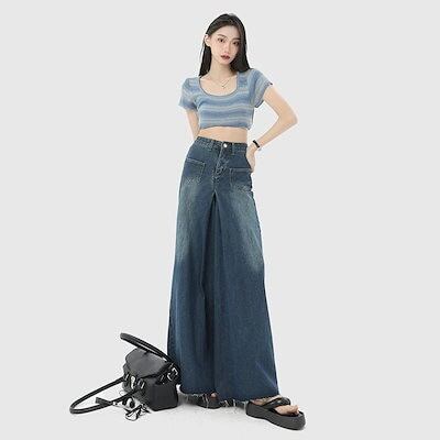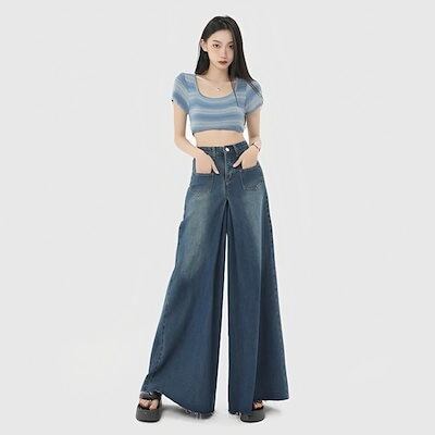 スラックスパンツ 2024新作 流行り デニムパンツ ハイウエスト ワイドパンツ ジーンズ レディース レトロ ゆったり ズボン脚長効果!ワイドパンツ デニムボトムス スキニーパンツひんやりボトムス