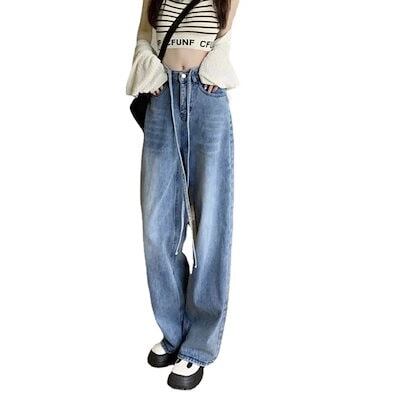 春 夏レトロ ジーンズ レディース 新作 ハイウエスト ワイドパンツ スリム見え オールマッチ ストレート ドレープ感 流行りひんやりボトムス