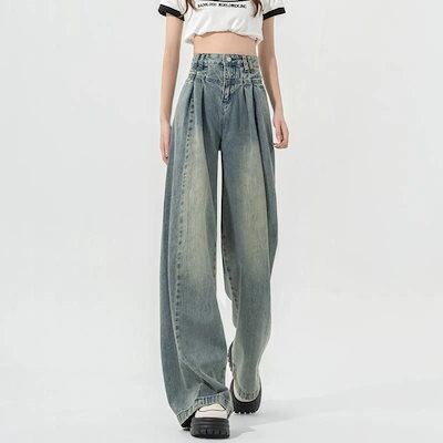 デニムパンツ ジーンズ レトロ レディース おしゃれ スキニーパンツ ハイウエスト ワイドパンツ ズボン デニムボトムス ゆったり シンプル 2024新作