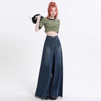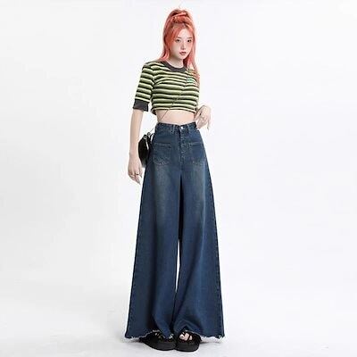 レディース 流行り おしゃれ ゆったり スキニーパンツ スラックスパンツ デニムパンツ デニム ジーンズ 【2枚購入で レトロ ワイドパンツ 2oo円OFF!】2024新作 ハイウエスト ズボン