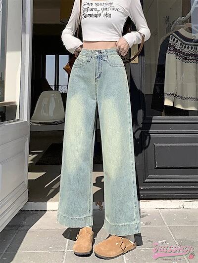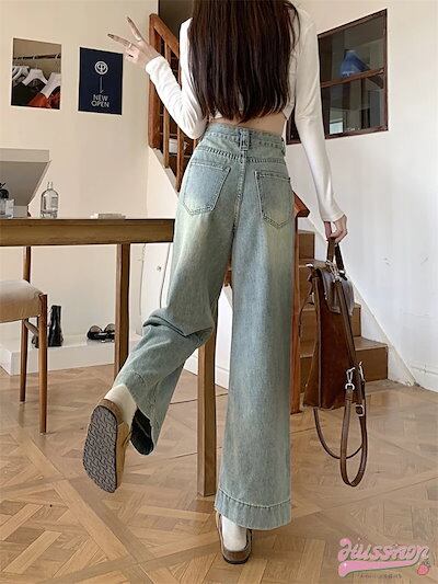 2024春夏パンツ デニム ジーンズ ワイドパンツ デニム ジーンズ ワイド ストレート ハイウエスト 脚長効果 美脚効果 細見え ウォッシュ加工 春 白 カジュアル 韓国ファッション レディース お