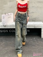 2024春夏パンツ デニム ジーンズ ワイドパンツ デニム ジーンズ ワイド ストレート ハイウエスト 脚長効果 美脚効果 細見え ウォッシュ加工 フリンジ 春 カジュアル 韓国ファッション レディー | Jeannede ジャンヌデ