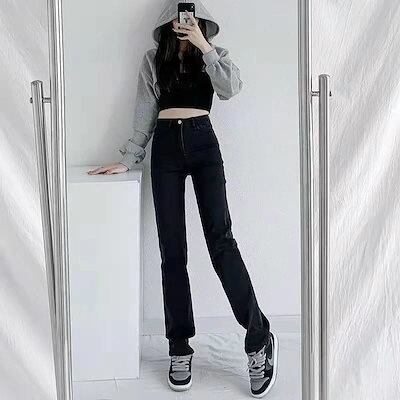 ブラックジーンズレディース2023 秋新作 デニムボトムス 韓国版 新しいゆるいファッションパンツ