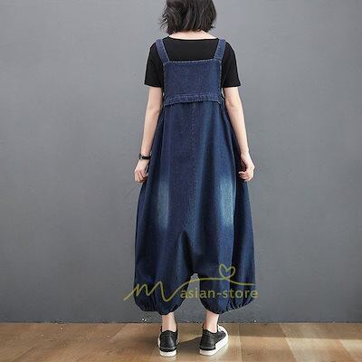サロペット オーバーオール デニムパンツ レディースロング丈 ジーンズ 春夏新作 ロングズボン 無地