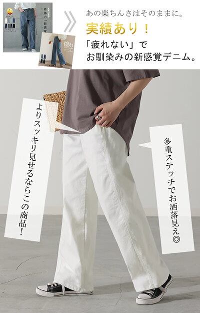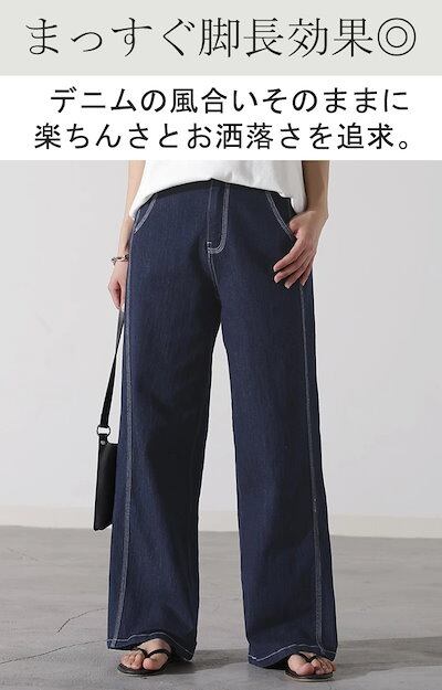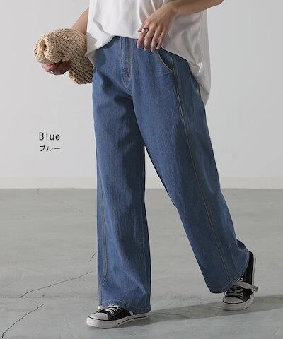HUG.Uデニム 新感覚 多重ステッチ パンツ デニムパンツ レディース ハイライズ ワイドパンツ ワイド 大きいサイズ