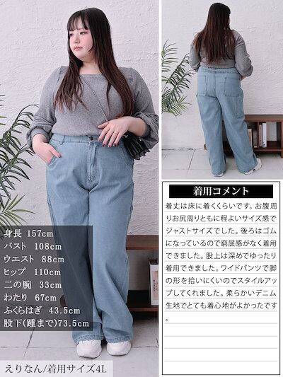 ゴールドジャパン大きいサイズレディース パンツ ズボン ビッグポケットコットンデニムワイドパンツ ボトムス デニムパンツ ワイドパンツ ロング デニム ジーパン ジーンズ ポケット ウエストゴム ジップ 冬新作 冬服