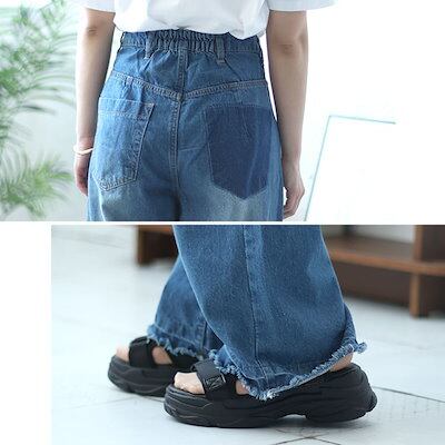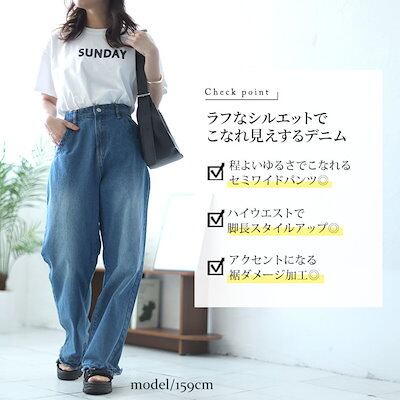 ゴールドジャパン大きいサイズレディース ボトムス パンツ ヴィンテージ加工セミワイドデニムパンツ ロングパンツ ワイドパンツ デニムパンツ ジーパン デニム ワイド セミワイド ング ポケット ウエストゴム 春新作