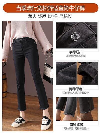 Chio'2ndフレアジーンズ レディース 春春冬春新作 ゆったり ハイウエストl細め ストレート 黒 百 子供用