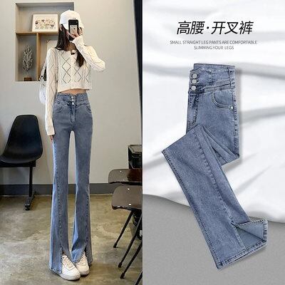 Chio'2ndスプリットジーンズ レディース ストレート 春春冬春新作 ハイウエlスト 薄手 小さめ ワイド マイクロ フレア パンツ