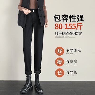 Chio'2ndブラックジーンズ レディース シーズン ハイウエスト 新作 ウエスlトゴム ハーレムパンツ レディース