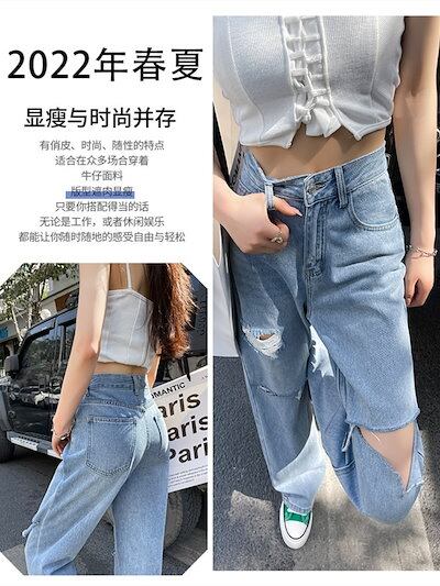 Chio'2nd淡色ストレートジーンズ レディース 年春新作 ハイウエストlルーズワイドレッグ トレーリングデザインパンツ