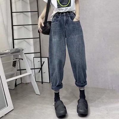裏起毛 厚手 ニューデザイン デニムボトムス ハーレムパンツ レディース ラージコード ハイウェスト 着痩せ ストレートパンツ