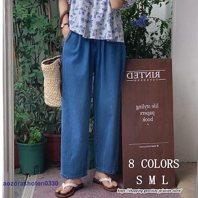 【3月新品】パンツ デニム ジーンズ 美シルエットハイウエストワイドデニムパンツ レディースボトムス チノパンツ 綿 イージーパンツ バックゴム 低身長 コクーンパンツ