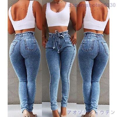 【3月新品】ジーンズ レディース デニム パンツ ダメージ ハイウェスト 美脚 美尻 欧米風 ズボン スキニーデニム ボトムス ジーパン アンクルパンツ ロング丈