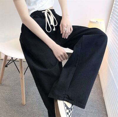 25新作 ワイドパンツ デニムパンツ レディース ボトムス ポケット付 ストレッチ ズボン ロング丈 無地 ひんやり ストレート ジーンズ ハイウエスト ウエストゴム ゆったり リラックス