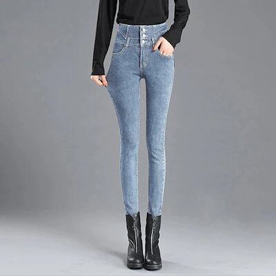 新作 2TYPE ハイウエスト 裏起毛で 美脚 スキニー ジーンズ レディース 韓国ファッション