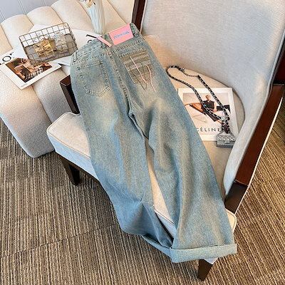 2枚購入で 2oo円FF!新作 ガウチョパンツ ライトブルー ストレートシリンダ ジーパン ゆとりがある 韓国ファッション ハイウエスト ワイドパンツ レディース