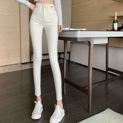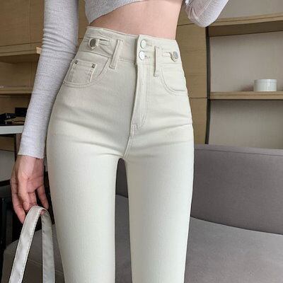 3日以内出荷脚長効果スキニーデニムパンツ 24新スリムハイウエストスリムストレッチレッグペンシルパンツ レディース 韓国ファッション