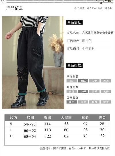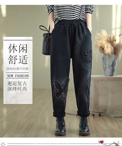 「ファットガール」 2024冬新品 裏起毛 デニムパンツ テーパードパンツ 蝶柄刺繍 大きいサイズ 体型カバー 厚手 保温 レディース ロングパンツ ジーンズ メガ割30%制限