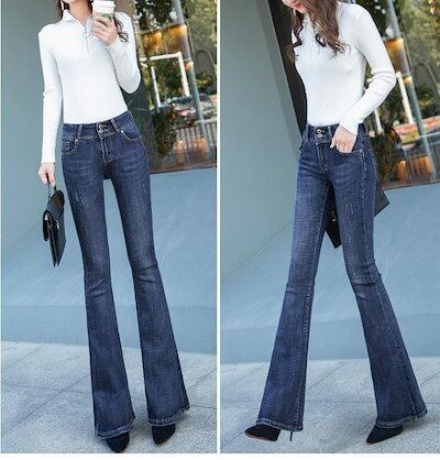 メガ割 美脚ブーツカットデニムパンツロングパンツジーンズレディースハイウエストストレッチゆったりシルエットワイドパンツガウチョデニム脚長