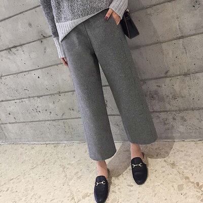 定番 秋冬 ウエストゴム パンツ ウールライク 厚手 ワイドパンツ 9分丈 体型カバー ギフト レディース 秋冬 仕事 OL 美脚 ハイウエスト アンクルパンツ クロップド丈 ガウチョ 暖かい オフィ | Jeannede ジャンヌデ