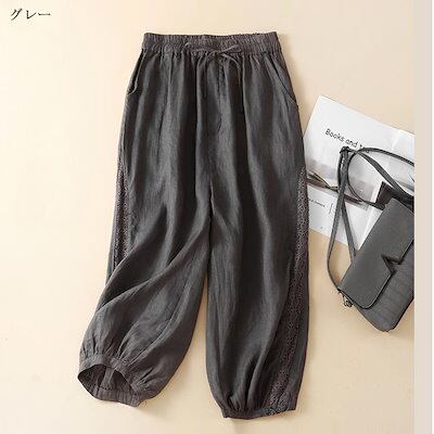 バルーンパンツ 春夏 リネン風 レディース パンツ ロング丈 アンクルパンツ 大きいサイズ ワイドパンツ コクーンパンツ ロングパンツ イージーパンツ 総ゴム ウェスト紐付き 調整可 ボトムス 七分丈