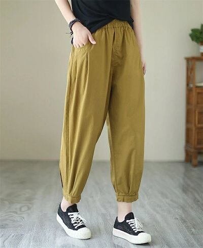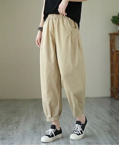 パンツ ワイドパンツ レディース 九分丈 綿100% コットン 無地 ズボン ウエストゴム イージーパンツ 楽ちん ボトムス 綿 アンクル丈 お洒落 きれめ 通勤 オフィス 着?せ シンプル カジュア