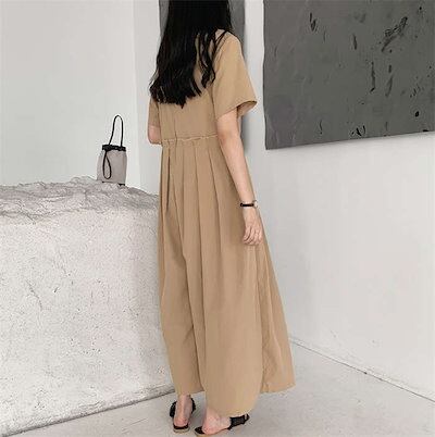 オールインワン レディース パンツドレス 半袖 春夏 きれいめ オーバーオール サロペット サロペ つなぎ パンツ ワイドパンツ ロングパンツ ロング クルーネック 無地 ゆったり 涼しい 体型カバー